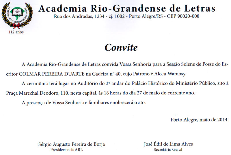 livro seu; propôs minha admissão para a Academia Rio-grandense de